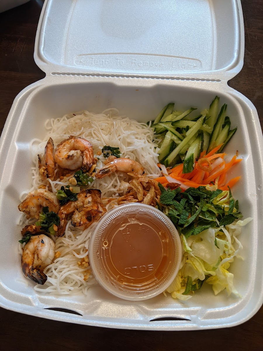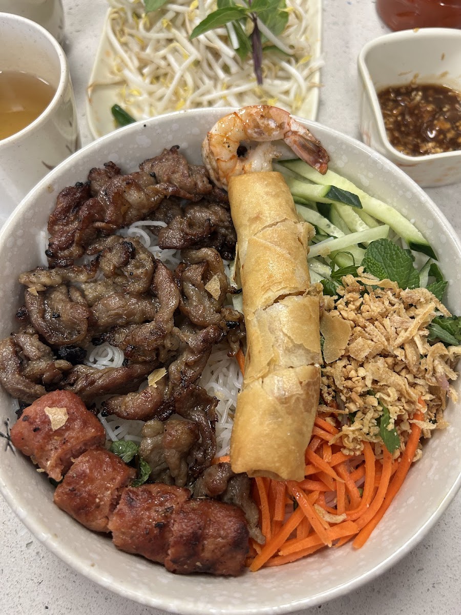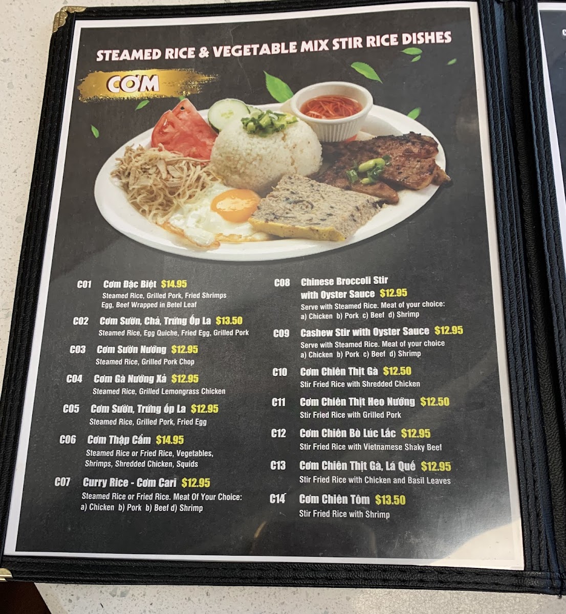 Popular Dishes: For rice lovers, the Com Suon, Cha, Trung Op La (CA$16.95) presents a delectable combination of steamed rice paired with egg quiche, fried egg, and grilled pork — it’s a comforting dish that will leave you craving more. The Com Ga Nuong Xa (CA$14.95) features juicy grilled lemongrass chicken that invigorates your palate, while the Fresh Spring Rolls (CA$7.95) are an essential starter, packed with shrimp, vermicelli, and fresh vegetables, all elegantly rolled in rice paper.