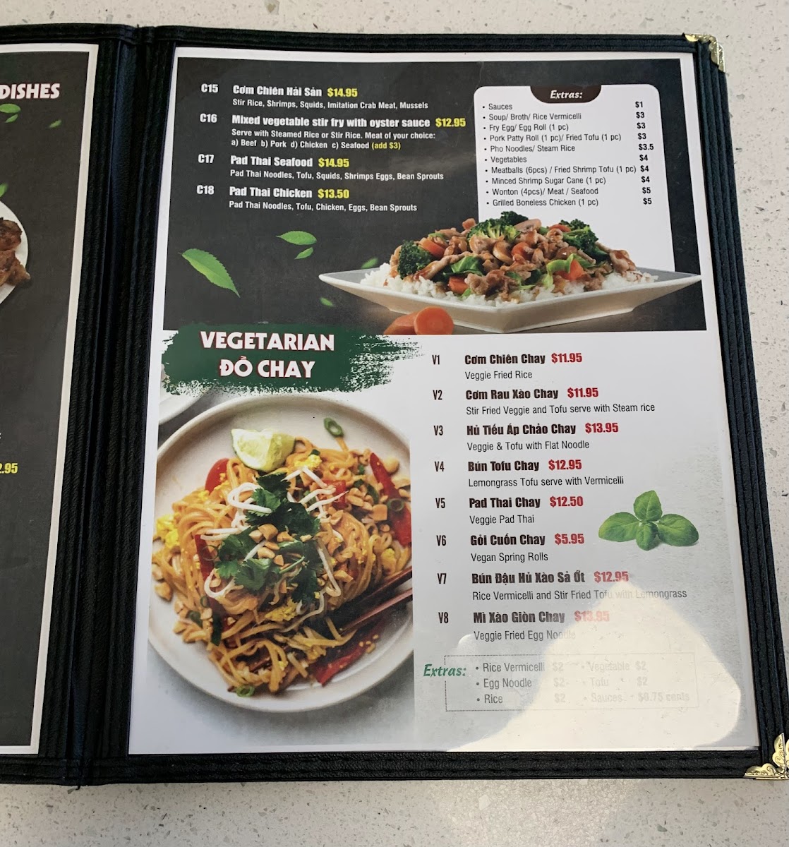 Cuisine Type: At PHO 4 U, you'll find an extensive menu that beautifully showcases traditional Vietnamese flavors. From hearty pho to a variety of mouth-watering rice dishes, every plate is carefully crafted to deliver an authentic taste of Vietnam. Their Pad Thai Seafood (CA$16.95) is a must-try, boasting a delightful harmony of pad thai noodles tossed with tofu, squids, shrimp, eggs, and fresh bean sprouts, creating a flavor explosion in every bite.